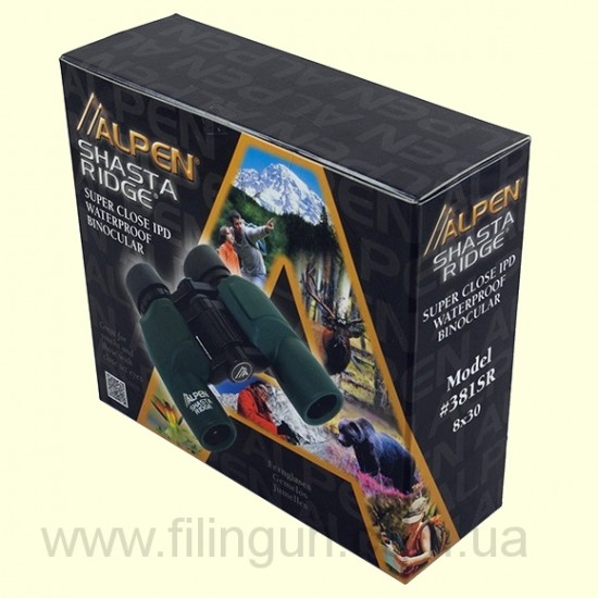Бинокль Alpen серии Shasta Ridge, характерная особенность которых, это то что, бинокль обладает прекрасными характеристиками и исключительными свойствами, удовлетворяющими требованиями оптики для спорта, туризма, рыбалки и охоты. Благодаря мульти просветлённой оптике, повышается яркость изображения и контрастность по всему окуляру и достигается изображение высочайшего класса. Такое покрытие даёт возможность просмотра чёткого, яркого, контрастного изображения объекта по всему полю окуляра. Бинокль Alpen Shasta Ridge 8x30, имеет герметичный прорезиненный корпус с азотным наполнением, что повышает устойчивость бинокля к механическим повреждениям и даёт возможность использования бинокля при любых погодных условиях.