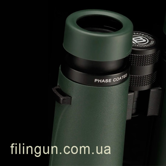 Бинокль продуман и с точки зрения эргономики. Наглазники Twist-Up с двухступенчатой регулировкой позволяют комфортно пользоваться прибором как людям в очках, так и без них, сохраняя полное поле обзора. Корпус с прорезиненным покрытием не скользит в руках и защищает оптику от ударов и внешних воздействий.
