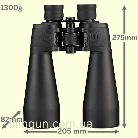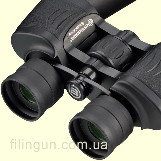 Бинокль Bresser Spezial Astro25x70, в первую очередь предназначен для астрономических наблюдений за небесными объектами, но несмотря на свое основное значение, данный прибор будет удобен и для стационарных наблюдений за наземными объектами на расстоянии от 2 км и более. Оптическая система с многослойным просветляющим покрытием линз и Porro призмами из оптического стекла BaK4, обеспечивает великолепную цветопередачу и четкое, кристально чистое изображение по всему полю зрения. Наведение резкости осуществляется при помощи центрального барабана фокусировки, а для точного соответствия индивидуальным особенностям зрения предусмотрена диоптрийная подстройка и регулировка межзрачкового расстояния. Для достижения стабильности изображения при наблюдении за объектами бинокль необходимо установить на штатив. Комплект поставки включает нашейный ремень, защитные крышки для объективов и окуляров, а так же мягкий нейлоновый чехол для хранения и транспортировки.