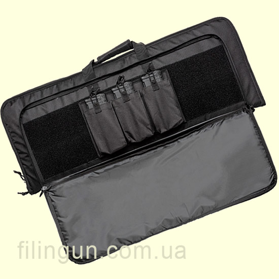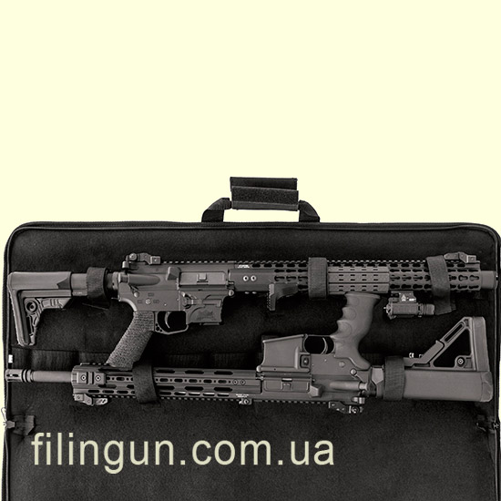 Чехол Leapers UTG 34" Homeland Security Gun Case Black длиной 86 сантиметров предназначен для перевозки двух винтовок таких как AR или АК с складными прикладами в основном отделении. Изготовлена из материала полиэстера 600D. Модель интересна тем, что она имеет универсальный дизайн и не привлечет лишнего внимания при транспортировке. Лицевой карман имеет внутри панель Velcro на которую цепляется подсумок на три магазина. Транспортировка осуществляется с помощью ручек для переноски в руках или с помощью мягкого регулируемого плечевого ремня шириной 3,8 см.