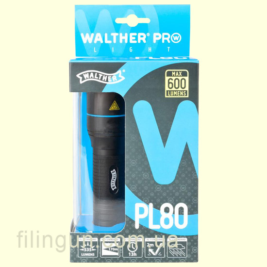 Компания Walther представляет вашему вниманию - фонарь Walther PRO PL80. Работает фонарь от 4-х AAA щелочных батареек или 4-х AAA NiMH. Максимальная мощность составляет до 535 Lumen. Так же в фонаре присутствует электронный контроль температуры, который предотвращает перегрев светодиодов. Работать Walther PRO PL80 удобно даже одной рукой. Изделие имеет 4 режима мощности: 535 Lumen, 215 Lumen, 55 Lumen и стробоскоп (TDS) для тактической обороны. Время работы составляет при 535 Lumen - 1,20 часа, при 215 Lumen - 3,10 часа, при 55 Lumen - 13 часов без прерывной работы. Корпус выполнен из авиационного алюминия. Также данная модель имеет регулируемый фокус луча. Фонарь Walther PRO PL80 имеет длину 134 миллиметра и вес 161 грамм.