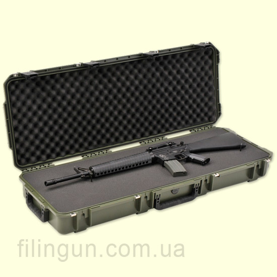 Кейс SKB оружейный 108х36.8х14 OD Green (олива) относится к серии 3i-4214. Кейс имеет водонепроницаемый корпус, изготовленный из сверх прочного материала под названием polypropylene copolymer (кристаллический сополимер полипропилена) с прочной водостойкой и пылезащитной конструкцией (MIL-C-4150J), стойкой к коррозии и ударным повреждениям. Запирается кейс с помощью четырех запатентованных защелок, которые оборудованы петлями, из нержавеющей стали, для замков. Также для удобства переноски кейс SKB оборудован тремя прорезиненными ручками, расположенными по бокам, а в нижней его части присутствуют роликовые колеса. Оболочка кейса от компании SKB устойчива к воздействию ультрафиолетовых лучей, коррозии, растворителей, грибка по стандарту (MIL-STD-810F), имеет высокую степень защиты от повреждений и ударов по стандарту (MIL-STD-810F), а также имеет автоматический клапан выравнивания давления (MIL-STD-648C).