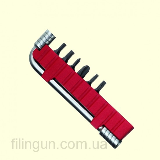 Намагниченный ключ Victorinox 3.0303 с набором из 6 бит, красным пластмассовым битодержателем набором бит. Ключ с набором запасных насадок может использоваться как самостоятельно, так и с мультитулом Victorinox. Пластмассовый битодержатель рассчитан на 10 бит, что позволяет увеличить набор на 4 дополнительные биты. Гнезда битодержателя расчитаны под стандартные биты.