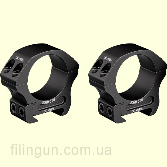 Кольца Vortex Pro Series 30 mm Weaver/Picatinny Low - низкопрофильные, предназначены для установки оптического прицела с трубой диаметром 30 мм, с посадочным местом Picatinny или Weaver. Сочетают в себе непревзойденную надежность и прочность с высококачественной обработкой, что обеспечивает максимальную точность и постоянство. Изготовлены из алюминия марки 7075-T6 с защитным анодированием черного цвета Type 2 Matte Black Anodized. Высота до центра трубы от основания составляет 0.9 дюйма (22.86 мм), подойдет для прицелов с внешним диаметром объектива до 40 мм. В комплекте торцевой ключ T-25 для затяжки фиксирующих болтов.