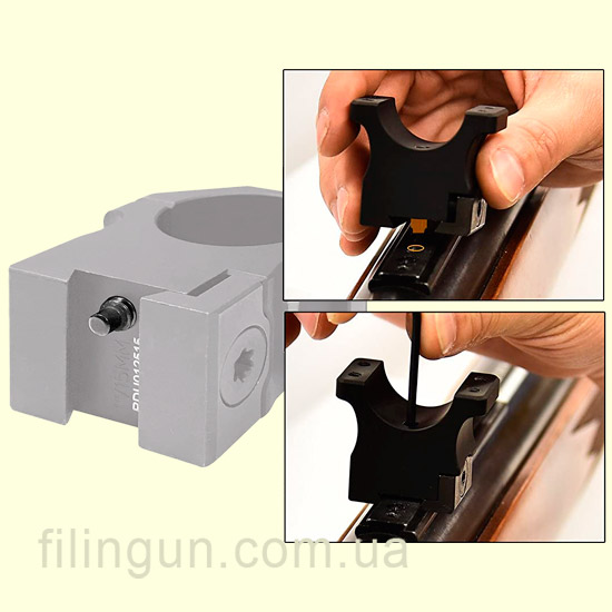 Крепление Leapers UTG PRO P.O.I. Rings 1" 9-11mm Dovetail Medium Pro (RDU012515) - среднепрофильные кольца, предназначенные для установки оптического прицела с трубой диаметром 25,4 мм на оружие с посадочным местом типа "Ласточкин хвост". Инновационные решения при изготовлении колец обеспечивают простую и надежную установку на оружии. Боковая пластина с винтом Torx, управляемая двойными подпружиненными направляющими стержнями, точно сжимает планку для надежного удержания и позволяет избежать перекоса крепления, а съемный стопорный штифт с резьбой обеспечивает дополнительную точку сопряжения для защиты от двунаправленной отдачи. Оригинальный контурный профиль с идеально ровной внутренней поверхностью колец не деформирует корпус прицела и защищает от различных повреждений. Конструкция из авиационного алюминия 6061-T6 и стали с матовой черной отделкой. Высота до центра 28 мм, подойдет для прицелов с внешним диаметром объектива до 55 мм. В комплекте набор запасных винтов и ключей для монтажа.