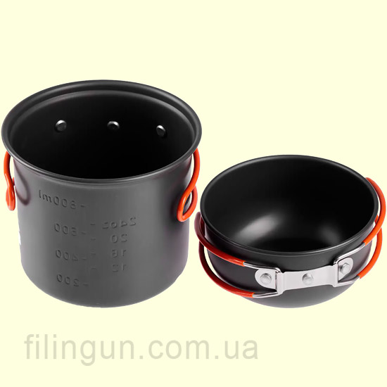 Многофункциональность. В набор входит все необходимое для приготовления пищи на открытом воздухе, включая небольшой котелок и крышку в виде пиалы. Это позволяет готовить разнообразные блюда прямо на месте. Одной из особенностей Skif Outdoor Fuzz Pot является наличие складных прорезиненных ручек на обоих элементах набора. Кроме того, для удобства использования котелок оснащен мерной шкалой на стенке.