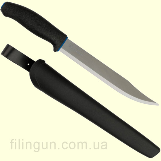 Мы хотим вам предложить одну из моделей данной фирмы - нож Mora 749. Очень прост и удобен в использовании нож компании Мора 749, он имеет длину клинка 205 миллиметра и удобную пластмассовую ручку покрытую резиной. Такое сочетание очень хорошо показывает себя при использовании ножа Morakniv Allround 749 с влажными или жирными материалами. Клинок выполнен с нержавеющей стали Sandvik 12C27, которая очень не прихотлива в использовании. В комплекте с ножом идет пластмассовые ножны для удобства хранения и переноски. Нож отлично себя зарекомендовал себя как на природе та и в домашних условиях на кухне. Если вас заинтересовала данная модель ножа, от компании Mora, вы можете купить её у нас в интернет-магазине Filingun, сделав заказ через форму сайта или же позвонив по телефонам указанных в шапке сайта.