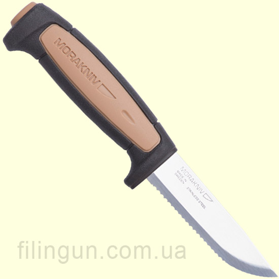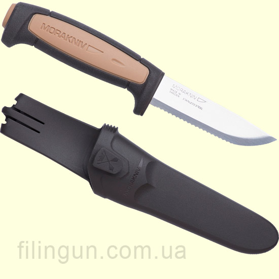 Мы хотим вам предложить одну из моделей данной фирмы - нож Mora Rope, артикул 12245. Это нож относится к новому поколению ножей компании Mora серии Allround. Нож очень прост и удобен в использовании, он имеет длину клинка 91 миллиметра и удобную пластмассовую ручку покрытую резиной. Рукоятка ножа поменяла свой дизайн теперь она имеет удобный упор на гарде. Изготовлена рукоятка с прорезиненого термопластика TPE со вставками разных цветов, что упрощает работу с ножами данной серии, так как по цвету вы всегда определите какой нож у вас в руках и какой вам может понадобится. Такое сочетание очень хорошо показывает себя при использовании ножа с влажными или жирными материалами. Нож относится к профессиональным инструментам очень высокого класса. Клинок выполнен с нержавеющей стали Sandvik 12C27, которая очень не прихотлива в использовании. В комплекте с ножом идет пластмассовые ножны для удобства хранения и переноски. Так же на чехле предусмотрена клипса для того что бы вы могли соединить не сколько ножей между собой и надежно закрепить их на поясе, опять же для удобства использования. Нож Mora Rope придется по вкусу строителям. Если вас заинтересовала данная модель ножа, от компании Mora, вы можете купить её у нас в интернет-магазине Filingun, сделав заказ через форму сайта или же позвонив по телефонам указанных в шапке сайта.