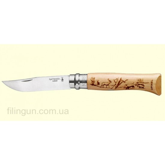 Нож Opinel VRI 8 Animalia Stag & Boar относится к линейке Tradition Engraved knives. Данная линейка Tradition Gravures, многие её знают под таким названием, отличается от стандартной тем, что на рукоятках у них присутствуют гравировки виде разных картин или просто картинок зверей и рыб. Opinel VRI 8 Animalia Stag & Boar олень и кабаны будет хорошим помощником на кухне на пикнике на охоте или на рыбалке. За его не большой размер и вес он стал одним из любимых ножей Украинцев и не только. Нож Opinel VRI 8 Animalia Stag & Boar (олень и кабаны) имеет рукоятку, выполненную из дерева бук с гравировкой оленя и стаи кабанов. Линейка тематических ножей Opinel Tradition Engraved knives с гравировками на рыбацкую и охотничью темы будут великолепным подарком для ценителя настоящих мужских забав и активного отдыха. Если вам понравилась данная модель ножа, вы можете купить его у нас на сайте Filin Gun, сделав заказ через форму сайта или же позвонить по телефонам указанных в шапке сайта.