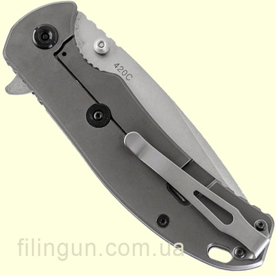 Наш интернет магазин рад предложить вашему вниманию складной нож Skif 420C Sturdy G-10/SW Grey - небольшой нож средних размеров, предназначен для выполнения большинства повседневных задач. Skif Sturdy 420C - нож флиппер, оснащенный плавником и двусторонним шпеньком, что позволяет открывать его одним движением как правой, так и левой руки. Широкий клинок длиной 9,6 см и толщиной в 3 мм со спусками от середины обуха имеет удобную подпальцевую выемку. Одна из лучших нержавеющая сталь марки 8Cr13MoV с финишной обработкой Stonewash, обладает хорошей коррозионной стойкостью, а так же славится длительным сохранением своей режущей кромки. Эргономичная рукоять интегрирована механизмом фиксации лезвия Frame Lock, со стабилизатором от выгибания в противоположную сторону. Комбинированная, с одной стороны из прочного композитного материала G-10 серого цвета и анодированной нержавеющей стали с другой, рукоять ножа Skif Starkey 420C оснащена съемной односторонней клипсой и широким отверстием для темляка.
