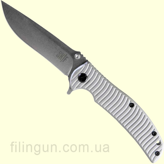 Наш интернет магазин рад предложить вашему внимаю нож Skif 425C Urbanite GRA/SW, Grey. Универсальный складной нож для широкого спектра работ, Skif 425C Urbanite - оснащен плавником и двусторонним шпеньком, что позволяет быстро приводить его в рабочее положение одним движением руки. Клинок с довольно большой длиной в 10 см и толщиной в 3 мм, обеспечивает превосходный рез и позволяет ножу справиться со всеми бытовыми задачами. Одна из лучших нержавеющая сталь марки 8Cr13MoV с финишной обработкой Stonewash, обладает хорошей коррозионной стойкостью и длительным сохранением режущей кромки. Эргономичная рукоять интегрирована мощным механизмом фиксации лезвия Frame Lock со стабилизатором от выгибания в противоположную сторону. Комбинированная, с одной стороны из серого анодированного алюминия и анодированной нержавеющей стали с другой, рукоять ножа Скиф Горожанин 425C оснащена съемной односторонней клипсой и отверстием для темляка.