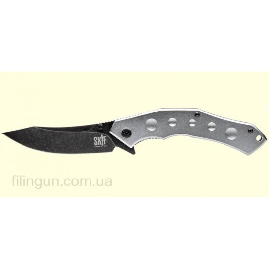 Наш интернет магазин рад предложить вашему вниманию складной нож Skif Mamba BSW Alum - небольшой городской нож средних размеров, для повседневного ношения. Skif Mamba AM2015BSW - классический флиппер, оснащенный плавником и двусторонним шпеньком позволяющим открывать его одним движением как правой, так и левой руки. Клинок с довольно большой длиной 9 см и толщиной в 2,5 мм обеспечивает превосходный рез и позволяет ножу справиться со всеми бытовыми задачами. В ноже используется нержавеющая сталь марки 5Cr15MoV с черным матовым покрытием Black Stonewash, обладает хорошей коррозионной стойкостью и длительным сохранением режущей кромки. Эргономичная рукоять интегрирована мощным механизмом фиксации лезвия Frame Lock со стабилизатором от выгибания в противоположную сторону. Рукоятка ножа выполнена из анодированного алюминия серого цвета, оснащена съемной односторонней клипсой и отверстием для темляка.