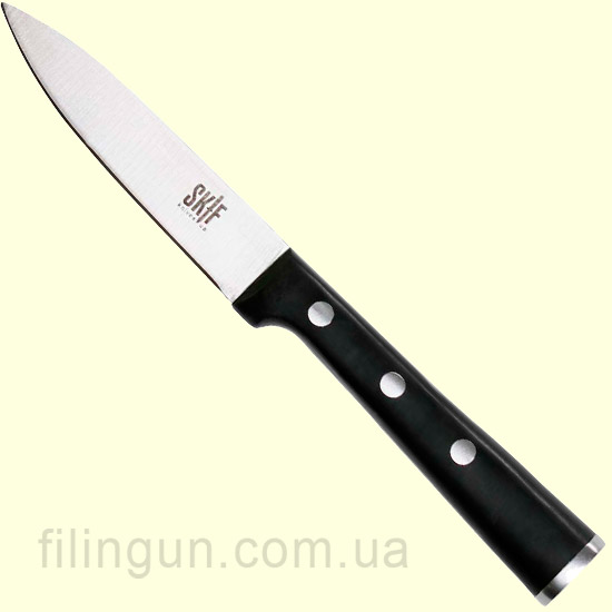 Наш интернет магазин рад предложить вашему внимаю серию кухонных ножей от украинской торговой марки Skif. Кухонный нож Skif Paring Knife - предназначен для чистки овощей. Легкий, удобный и острый нож с лезвием из нержавеющей стали марки 8Cr13MoV отлично подойдет для очистки и разрезания картофеля, кореньев, цитрусов и других овощей и фруктов. Рукоять из полимерного материала обеспечивает комфорт при использовании и безопасность при удержании даже мокрой рукой. Линейка ножей Skif кухня подходит для работ как в домашних условия, так и для профессионального использования в приготовлении пищи, являясь разумной альтернативой в выборе качества и цены на изделие.