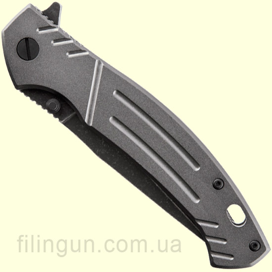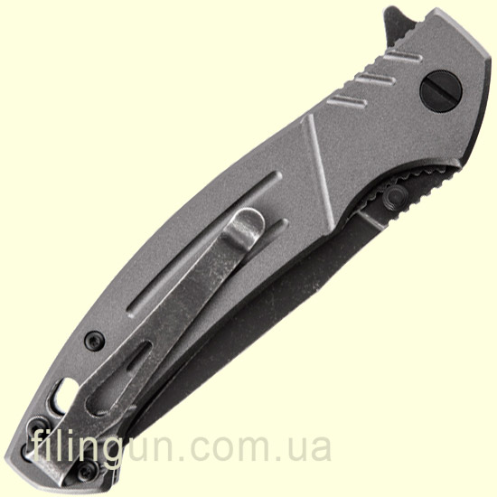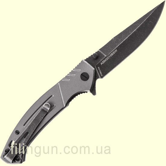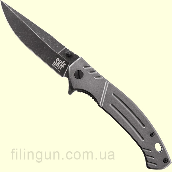 Наш интернет магазин рад предложить вашему вниманию складной нож Skif Slim BSW Alum - небольшой городской нож средних размеров, для повседневного ношения. Skif Slim ASM2015BSW - классический флиппер, оснащенный плавником и двусторонним шпеньком позволяющим открывать его одним движением как правой, так и левой руки. Клинок с довольно большой длиной 9 см и толщиной в 2,5 мм обеспечивает превосходный рез и позволяет ножу справиться со всеми бытовыми задачами. В ноже используется нержавеющая сталь марки 5Cr15MoV с черным матовым покрытием Black Stonewash, обладает хорошей коррозионной стойкостью и длительным сохранением режущей кромки. Эргономичная рукоять интегрирована мощным механизмом фиксации лезвия Frame Lock со стабилизатором от выгибания в противоположную сторону. Рукоятка ножа выполнена из анодированного алюминия серого цвета, оснащена съемной односторонней клипсой и отверстием для темляка.