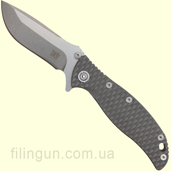 Наш интернет магазин рад предложить вашему вниманию изделие от компании Skif - нож Skif T-01 CPM-D2. Это небольшой городской нож средних размеров, для повседневного ношения. Skif T-01 CPM-D2 , титан - классический флиппер, оснащенный плавником и шпеньком позволяющим открывать его одним движением руки. Клинок с довольно большой длиной 10 см и толщиной в 5 мм обеспечивает превосходный рез и позволяет ножу справиться со всеми бытовыми задачами. В ноже используется сталь марки CPM-D2. Эргономичная рукоять интегрирована мощным механизмом фиксации лезвия Frame Lock со стабилизатором от выгибания в противоположную сторону. Рукоятка ножа выполнена из титана, оснащена съемной односторонней клипсой и отверстием для темляка.
