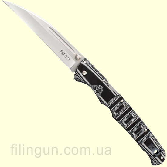 Нож Cold Steel Frenzy III 62P3A создан знаменитым дизайнером ножей Андреем Демко. Вдохновил его на создание древний японский Kabutowari. Клинок изготовлен из высококачественной американской стали марки S35VN, которая превосходно держит заточку. Рукоятка изготовлена из материала G-10 двух оттенков и обработана 3D эффектом. Также рукоятка имеет отверстие для темляка и двух стороннюю клипсу для ношения ножа, как в кармане брюк, так и для ношения на поясе. Клинок фиксируется с помощью новаторского механизма блокировки Tri-Ad для дополнительной безопасности и прочности. Данный механизм выдержал все изнурительные и мучительные тесты контроля качества, которыми славится компания Cold Steel.