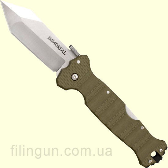 Нож Cold Steel Immortal OD Green CTS®XHP 23GVG, разработанный обычным ножевым мастером Майком Уоллесом, представляет собой большой, боевой тактический складной нож, который черпал вдохновение из печально известных лезвий римской армии. Привлекательное и необычное лезвие изготовлено из высококачественной порошковой стали CTS® XHP производства Carpenter и имеет сатинированное покрытие. Накладки на рукоятке текстурированные и выполнены из износостойкого стеклотекстолита G-10. Двухсторонняя клипса позволяет закрепит нож как на поясе так и в кармане брюк, а запатентованный шпенёк от Andrew Demko позволяет открыть нож в одно мгновение. Клинок надежно фиксируется с помощью запирающего механизма Tri-Ad® для повышение прочности, ударостойкости, долговечности ну и, конечно же, для безопасности.