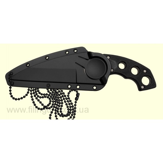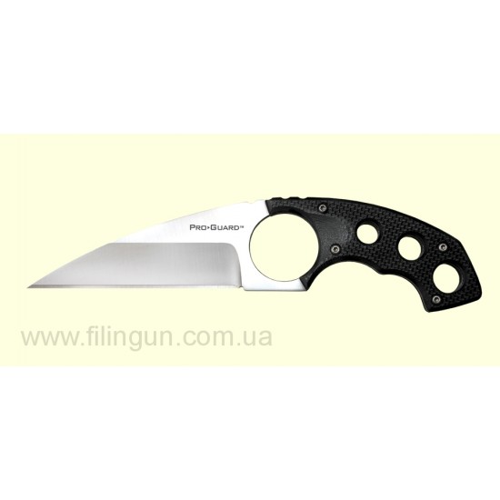 Новый нож Cold Steel Point Guard 49FP обладает несколькими функциями, на которые обязательно обратят внимание поклонники ножей носимых на шее. У ножа это плоское, легкое, как перышко, и поставляется в комплекте с потрясающим чехлом. Преимущества очевидны, поскольку его клинок дьявольски острый, а наклон, лезвия относительно интегральных отверстий под пальцы, в свою очередь делает возможным использование пистолетной рукояти. Нож имеет ручку из материала G-10. Она скелетонизированная, чтобы уменьшить вес. Благодаря интегральным отверстиям под пальцы, рука при работе этим ножом, не соскользнёт на острое лезвие.