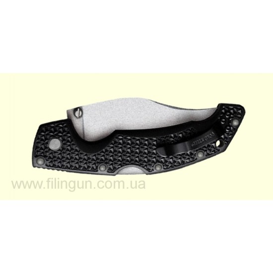 Складной нож серии Vouager, изготовлен из нержавеющей стали. Клинок своеобразной формы довольно широкий, но при этом крепкий и удобен для выполнения любых видов работ. Фиксация клинка, изготовлено компанией Cold Steel, надёжна и выдерживает большие нагрузки. Ручка изготовлена из уникального материала. Она чрезвычайно устойчива к истиранию, выцветанию, не подвержена влиянию влаги, не трескается. Эргономичный дизайн ручки обеспечивает надёжный хват в разных положениях. На рукоятке клип, который можно установить в двух положениях, чтоб вам было удобно носить нож на поясе, ремне или в кармане. Благодаря своей универсальности, он придётся по душе туристам, охотникам, рыбакам.