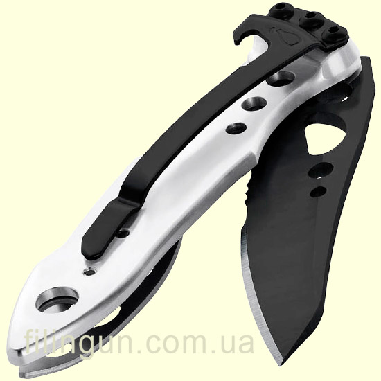 Нож Leatherman Skeletool KBX Black and Silver 832619, представляет собой, удобный складной нож с открывалкой для бутылок, который может использоваться во время походов, кемпинга, рыбалки или других активностей на свежем воздухе. Он имеет клинок с комбинированной режущей кромкой из нержавеющей стали 420HC и рукоятку из анодированного алюминия. Одним из преимуществ ножа является его однорукое открытие благодаря уникальной форме клинка и скелетный дизайн рукоятки, что делает его легкими и удобными для ношения в кармане или на поясном ремне, а также обеспечивает надежный хват и предотвращает скольжение во время использования. Модель оснащена механизмом блокировки клинка Liner Lock и предусматривает съемную карманную клипсу.