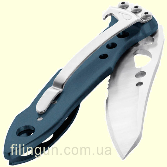 Нож Leatherman Skeletool KBX Denim 832383, представляет собой, удобный складной нож с открывалкой для бутылок, который может использоваться во время походов, кемпинга, рыбалки или других активностей на свежем воздухе. Он имеет клинок с комбинированной режущей кромкой из нержавеющей стали 420HC и рукоятку из анодированного алюминия. Одним из преимуществ ножа является его однорукое открытие благодаря уникальной форме клинка и скелетный дизайн рукоятки, что делает его легкими и удобными для ношения в кармане или на поясном ремне, а также обеспечивает надежный хват и предотвращает скольжение во время использования. Модель оснащена механизмом блокировки клинка Liner Lock и предусматривает съемную карманную клипсу.