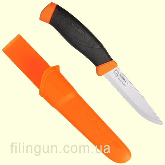 Мы хотим вам предложить одну из моделей данной фирмы - нож Mora Companion F Rescue, артикул 11828. Данная серия ножей Companion является модернизированной серии ножей Clipper. Очень прост и удобен в использовании нож компании Мора Companion MG, он имеет длину клинка 100 миллиметра и удобную пластмассовую ручку покрытую резиной и флуоресцентными вставками. Такое сочетание очень хорошо показывает себя при использовании ножа с влажными или жирными материалами. Клинок выполнен с нержавеющей стали Sandvik 12C27, которая очень не прихотлива в использовании и имеет серрейторную заточку с закругленным острием. В комплекте с ножом идут пластмассовые ножны, с флуоресцентным эффектом, для удобства хранения и переноски. Нож разработан специально для спасательных служб. Он может быстро перерезать ремень или же канат а за счет закругленного острия позволяет не ранить человека. Если вас заинтересовала данная модель ножа, от компании Mora, вы можете купить её у нас в интернет-магазине Filingun, сделав заказ через форму сайта или же позвонив по телефонам указанных в шапке сайта.