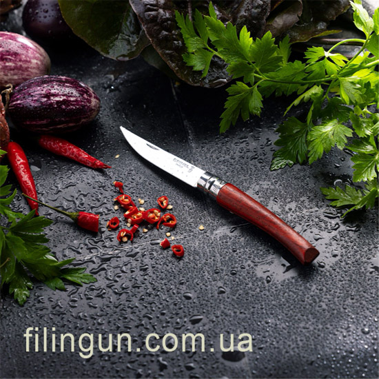 Нож Opinel №8 Effile Padauk — это идеальный инструмент для филетирования рыбы и других продуктов. Его уникальная конструкция и высококачественные материалы делают его незаменимым помощником на кухне.