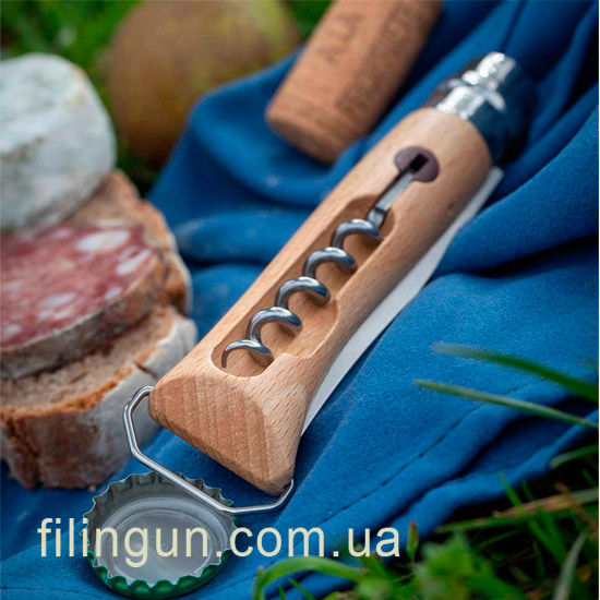 Универсальный нож с открывалкой для бутылок и штопором Opinel №10 VRI Corkscrew Bottle Opener - идеальный компаньон для любителей приключений и гурманов. Этот универсальный нож объединяет в себе несколько функций, сделав его незаменимым аксессуаром в любой ситуации.