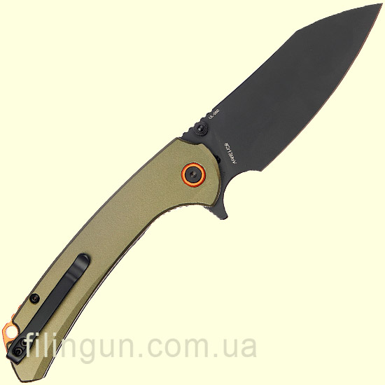 Накладка рукояти выполнена из алюминия оливкового цвета. Также стоит отметить наличие удобной съемной двухпозиционной клипсы позволяющей носить его даже в кармане штанов и темлячного отверстия.