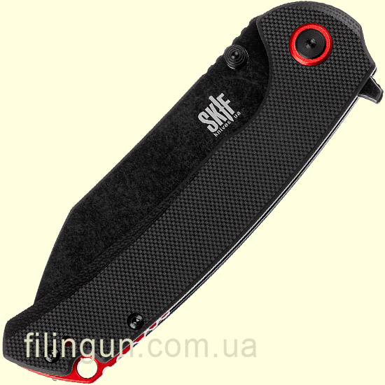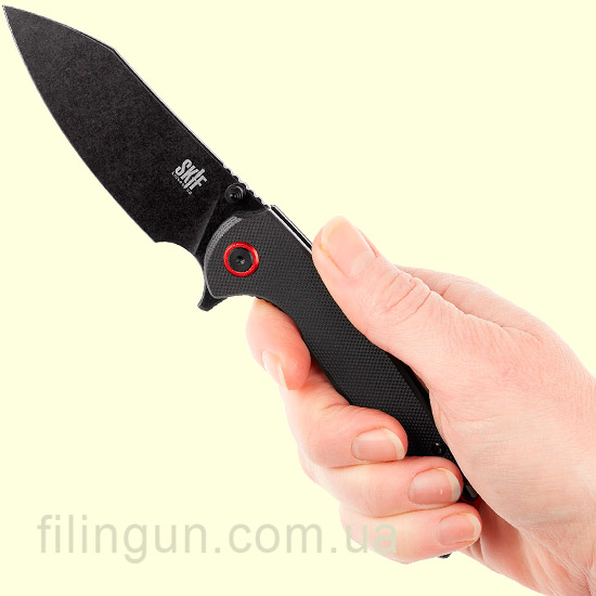 Складной нож Skif Jock Jr BSW Black — новое поколение в линейке данного производителя, созданное с акцентом на практичность, контроль и уверенный рез в повседневных задачах. Модель разрабатывалась специально как нож формата EDC и относится к типичным «резакам»: широкий клинок и высокие прямые спуски обеспечивают отличные режущие свойства при работе с упаковкой, картоном, пластиком и другими материалами в быту.