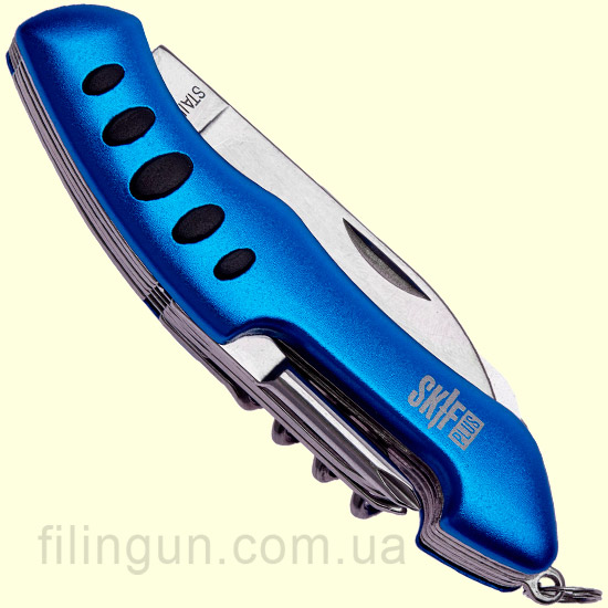 Многофункциональный нож Skif Plus Fluent Blue это полезный небольшой девайс, который поможет вам в самых сложных ситуациях, с которыми вы можете столкнутся. Изготовлен из нержавеющей стали марки 420 и имеет длину 10,2 см и вес всего 118 грамм. Накладки изготовлены из алюминиевого сплава с анодированием с пластмассовыми вставками.