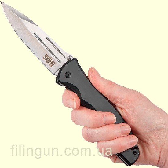 Складной нож Skif Plus Freshman I имеет клинок чертами Drop-Point и Spear point с толщиной обуха 3,7 миллиметра и изготовленного и нержавеющей стали марки 3Cr13. Накладки на рукоятке изготовлены из нержавеющей стали с лаконично гладкой поверхность придающие изделию определённый шарм, также присутствует клипса для переноски его в кармане брюк и большое продолговатое отверстие для темляка. Замок используется Frame Lock, а с помощью двухстороннего шпенька его можно быстро привести в рабочее состояние. Модель интересна тем, что она имеет сдержанный дизайн и прекрасно подойдет для повседневного ношения.