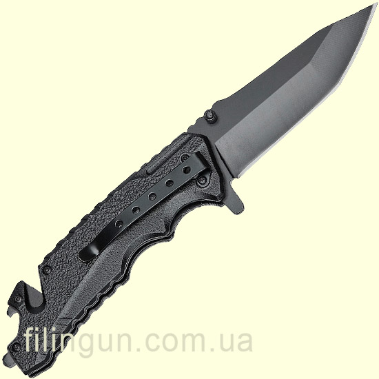 Многофункциональный складной нож Skif Plus Handy Black имеет множество функций: стропорез, открывалка, стеклобой и ключ для самых распространённых болтов и гаек размером 6, 8, 10, 12. Превосходный вариант для повседневного ношения. Нож имеет клинок, приближенный к стилю Американский танто с чёрным покрытием и рукоятку с подпальцевыми выемками для более надежного хвата. Односторонняя клипса позволит закрепить нож на ремне или же в кармане брюк. Замок используется Liner lock, а с помощью двухстороннего шпенька и флиппера изделие можно быстро привести в рабочее состояние. Также на обухе клинка присутствует упор для большого пальца.
