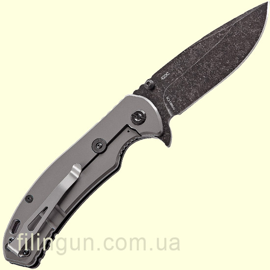 Открывается одной рукой с помощью двухстороннего шпенька или флиппера, а шарикоподшипник обеспечивает превосходно плавный ход при открытии. Форма клинка — Drop-Point имеет длину 9,6 см и толщину в 3 мм из нержавеющей стали марки 9Cr18MoV что лучше, чем у предыдущих моделей, обладает хорошей коррозионной стойкостью, отлично держит заточку и легко правится, а также финишную обработку Black Stonewash которая убережет от незначительных потертостей и царапин при частой эксплуатации.