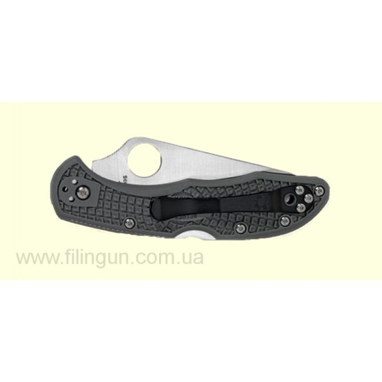Новый вариант цвета ручек, это камуфляж армии США. Сочетание серого и зеленого позволяет быть ножу незаметным в окружающей среде. Складной нож Spyderco, выпускается как для военных, так и для гражданских лиц. Лезвие изготовлено из нержавеющей стали. Ручка ножа из армированного стекловолокном нейлона. Текстура на ручке обеспечивает надёжный хват. Клипса надёжно удерживает нож при ношении его в кармане или на поясе.