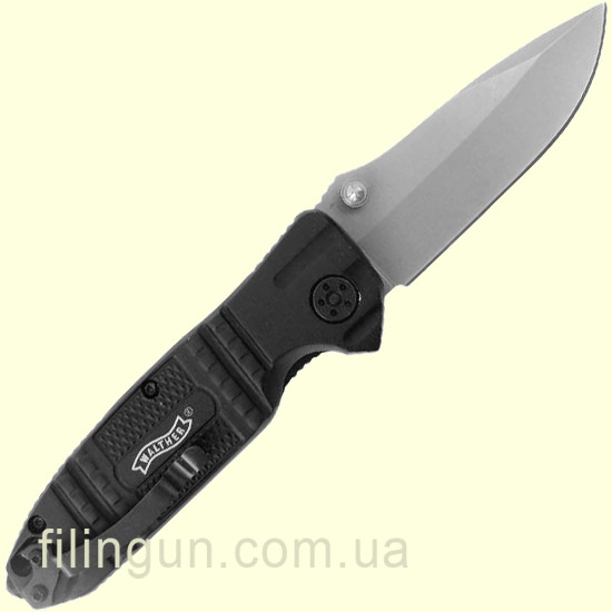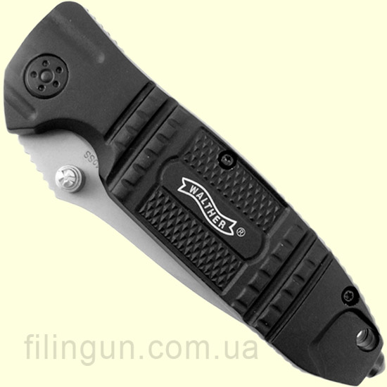 Тактический складной нож Walther STK интересен тем, что у него присутствует функция подпружиненного лезвия позволяющая ускорить открытия клинка. Текстурированная алюминиевая рукоятка в дизайне Walther Tac обеспечивает удобный хват. Клинок, изготовленный из нержавеющей стали марки 440C и формой Spearpoint. Замок Linerlock надежно удерживает клинок в открытом состоянии. С помощью двухстороннего шпенька нож можно легко и быстро приводится в открытое положение, а с помощью клипсы для кармана он всегда будет под рукой. Также присутствует стеклобой. Для удобства в ношении и хранении комплектуется нейлоновым чехлом.