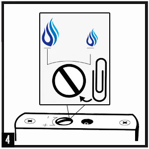 - регулировка пламени осуществляется при помощи монетки или канцелярской скрепки поворотом винта (4)