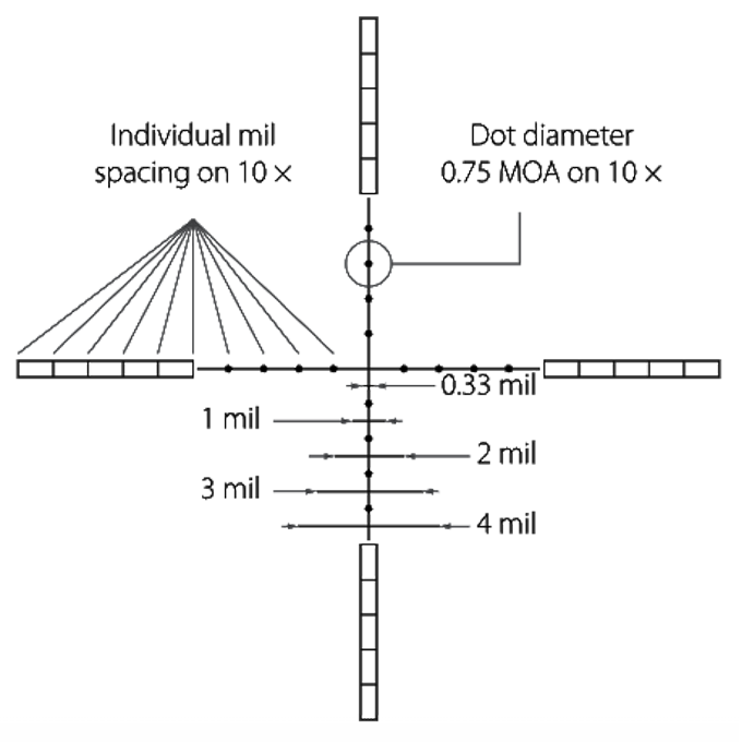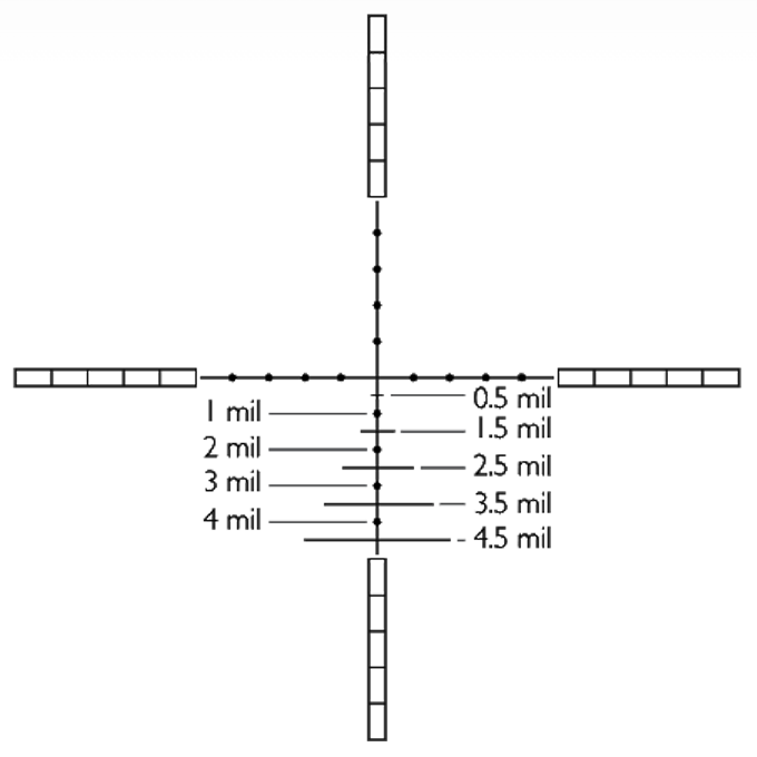 Расстояние в половину мил-точки на нижней стойке обеспечивает улучшенную точность прицеливания на больших расстояниях.