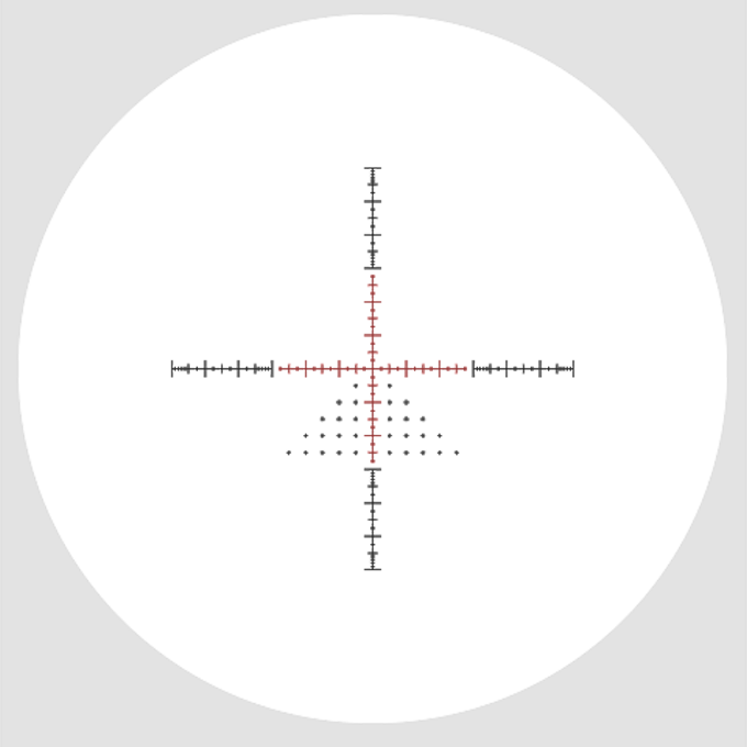 Прицельная сетка FFP Half Mil предназначена для оптических систем с первой фокальной плоскостью и основана на принципах прицельной сетки с Mil расстоянием. Она представляет собой универсальную сетку, которая обеспечивает точное прицеливание в любых условиях благодаря своей разметке в пол-Mil, превышающей 5 мил во всех направлениях.