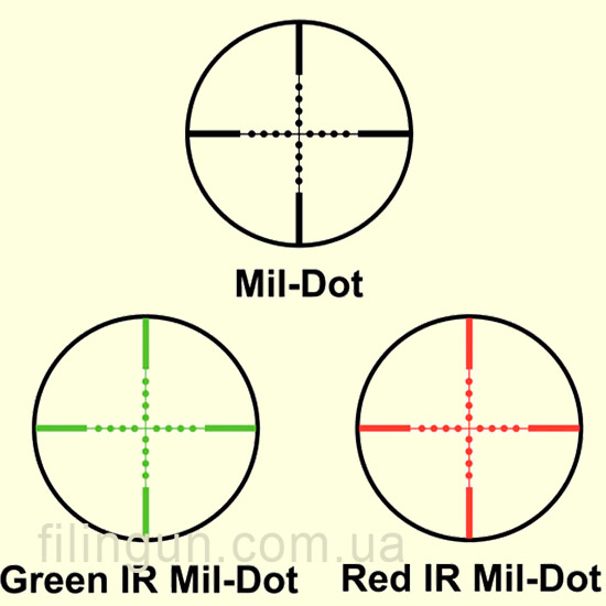 | Тип прицельной сетки | Mil Dot IR |
