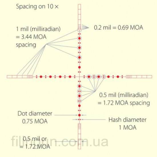 | Тип прицельной сетки | 10x 1/2 Mil Dot IR |
