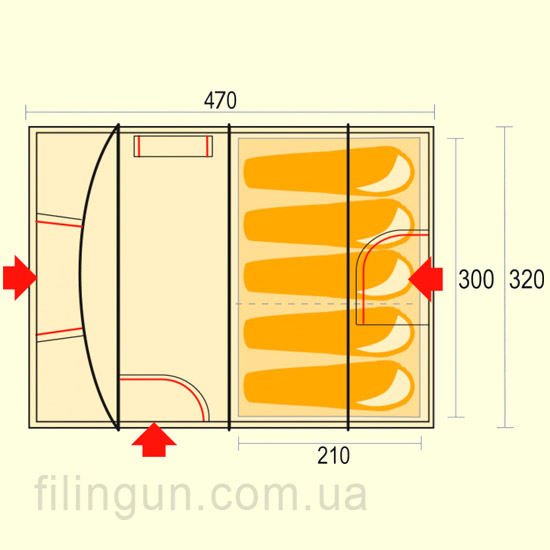 | Внутренняя палатка (ДхШхВ), мм | 2100 х 3000 х 1900 |