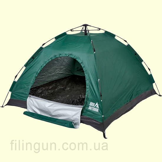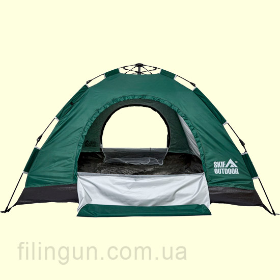 Кемпинговая автоматическая трехместная палатка Skif Outdoor Adventure Auto I 200х200 Green предназначена для использования в весенне-летний период года, во время туристических походов, рыбалки, охоты и отдыха на природе в качестве ночлега или укрытия от солнца в дневное время. Модель, без проблем выдерживает небольшие осадки в виде дождя и росы, а также имеет специальное покрытие, защищающее от ультрафиолетовых лучей, что является незаменимым при использовании в солнечную погоду. Палатка проста в эксплуатации и представляет собой автоматическую раскладную конструкцию из 4 трех сегментных дуг. Все, что нужно - развернуть палатку, выровнять дуги, приподняв палатку вверх, поставить и прижать сверху по центру с небольшим усилием. Для удобства использования помещения палатки присутствуют два входа-выхода продублированные москитной сеткой.
