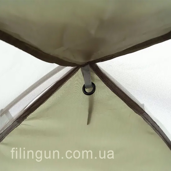 Купольная (полусферическая) конструкция каркаса обеспечивает легкость установки и надежную устойчивость к ветровым нагрузкам, что позволяет устанавливать палатку даже в хорошую погоду без использования колышков для фиксации.