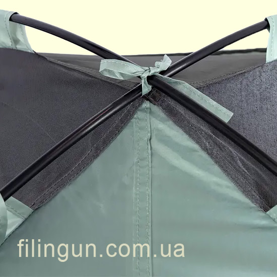 Палатка оснащена тремя дугами из гибкого стеклопластика, обладающими высокой прочностью и способными выдерживать значительные нагрузки.