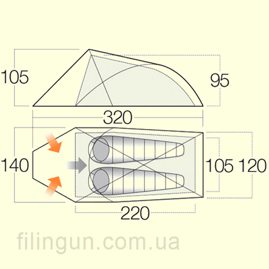 | Внутренняя палатка (ДхШхВ), мм | 2200 х 1050 х 950 |