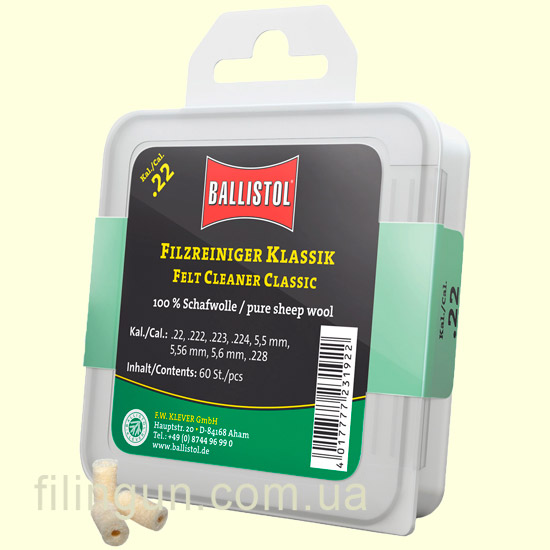Высококачественный одноразовый патч для чистки Ballistol войлочный классический Cal. .22, .222, .223, .224, 5.5 mm, 5.56 mm, 5.6 mm, .228 предназначен для чистки разных видов огнестрельного оружия. Преимущества войлочного патча заключается в том, что он сразу готов к применению надежно удерживается на вишере и благодаря своей мягкости не наносит повреждению стволу. Данная серия “Classic” изготовлена из 100% овечьей шерсти. Количество - 60 шт.