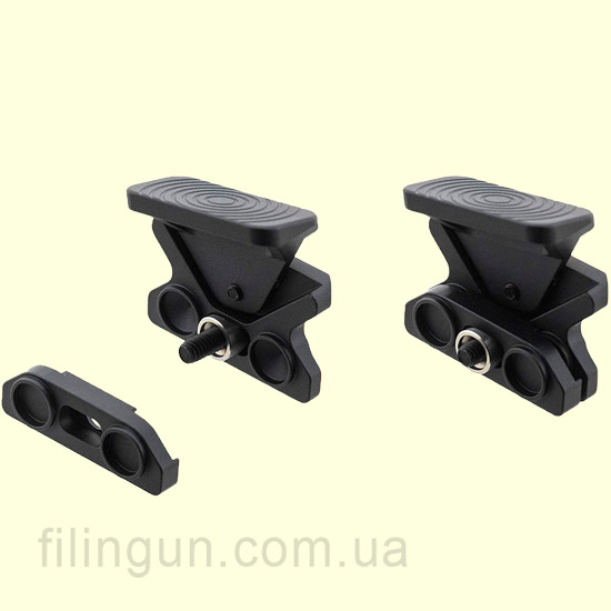 Передний упор Leapers UTG Angled Index Mount M-LOK Matte Black изготовлена на станке с ЧПУ из авиационного алюминия 6061-T6 с черным матовым анодированием. Крепится на базу M-LOK® и включает в комплект прокладку для регулировки зазора. Данный упор для большого пальца можно установить как на правую сторону так и на левую. Сама площадка регулируется по наклону.