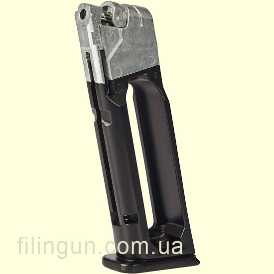 Питание пневматического пистолета осуществляется от стандартного баллона CO₂, что обеспечивает стабильную скорость полета пули и до +\- 50 выстрелов на одном баллоне. Калибр 4,5 мм (BB) позволяет использовать стальные шарики, что делает стрельбу максимально приближенной к реалистичной.