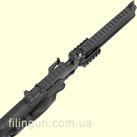 Для прицеливания используются складные целик и мушка, а также предусмотрена планка Picatinny для установки оптического или коллиматорного прицела — это открывает широкие возможности по модернизации и настройке оружия под себя.